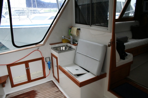 In immaculate condition, double diagonal kauri, (glassed over). Economical cruising - powered by a Ford 220 hp turbo diesel engine. Well equipped for fishing with a light airy interior and generous galley. Teak decks recently replaced. She is equipped with bait tank, game chair, enclosed flybridge with hard top. Extensive electronic equipment.