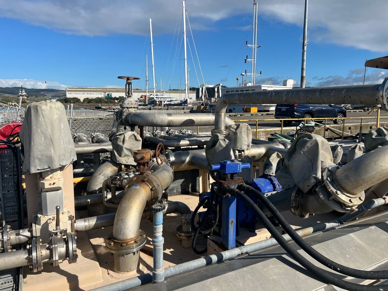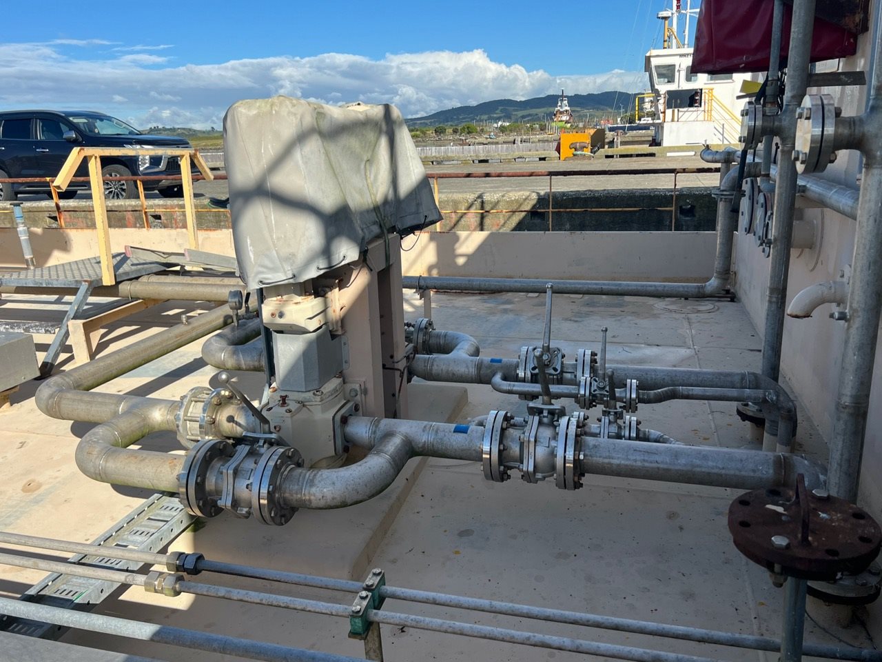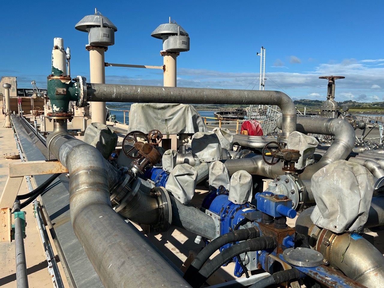Cargo deck pumps include eight (8) Ebsray V30 sliding Vane Pumps, coupled to 5.5W/414/50 EEX D IP66 Motors, NSC GWA TRX68AM Gearboxes. Two (2) Vogelsang VX186 Rotary Lobe Pumps, Danfoss 2-piece OMT 250 hydraulic motors. Onboard power is provided by two Baudouin GEB 175 kVA Gensets. LDT is 504 tonnes.