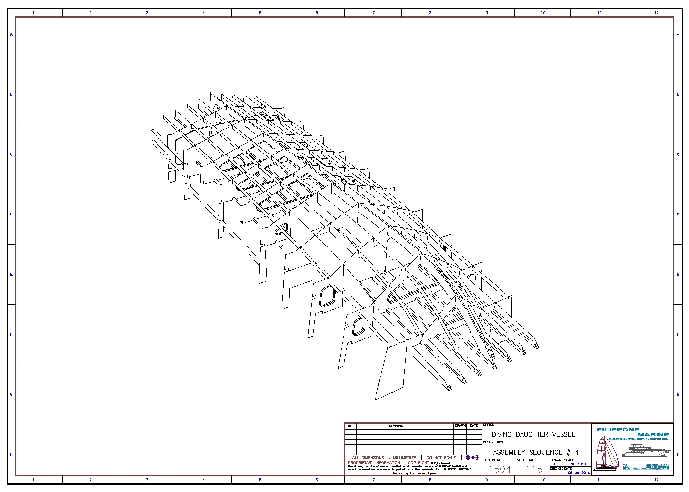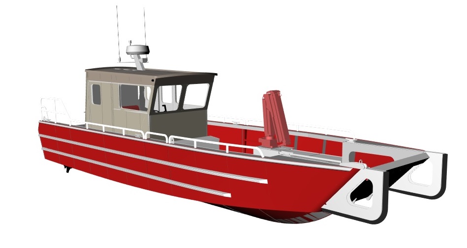 Gunwale, seats and crane foundation complete the hull structure.