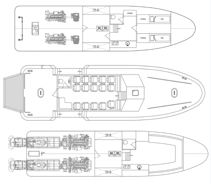 Details shown are of a 16m Pilot Cutter, however these can be built from 14m all the way up to 24m if required. These work well as Pilot, SAR and patrol boats and internal layout can be changed to suit.