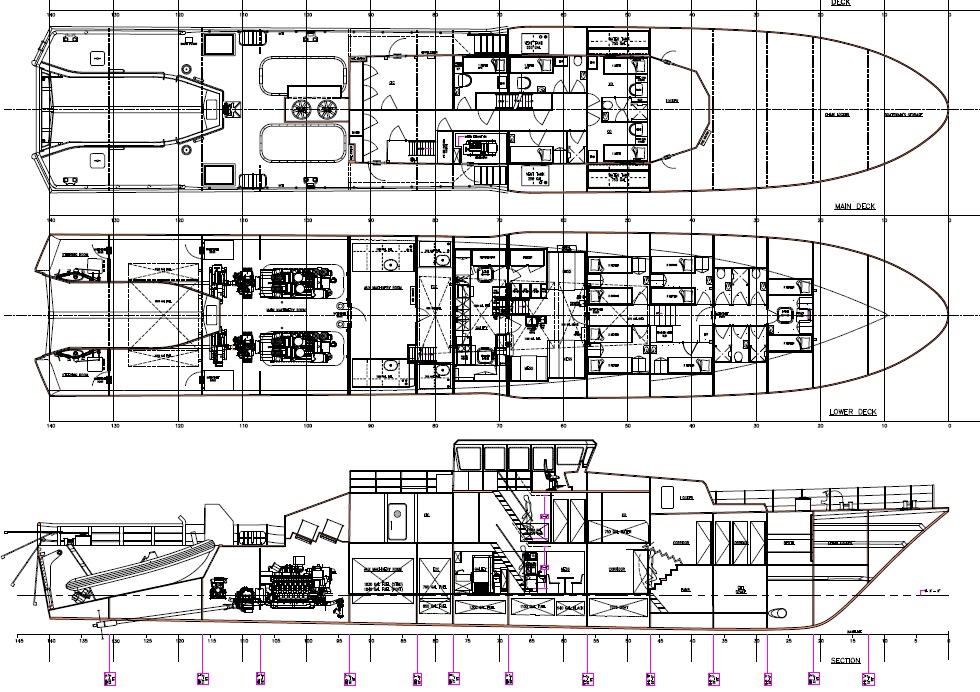 Stern ramp for 8m RHIB-deployment & retrieval. Accommodation for 24 persons.