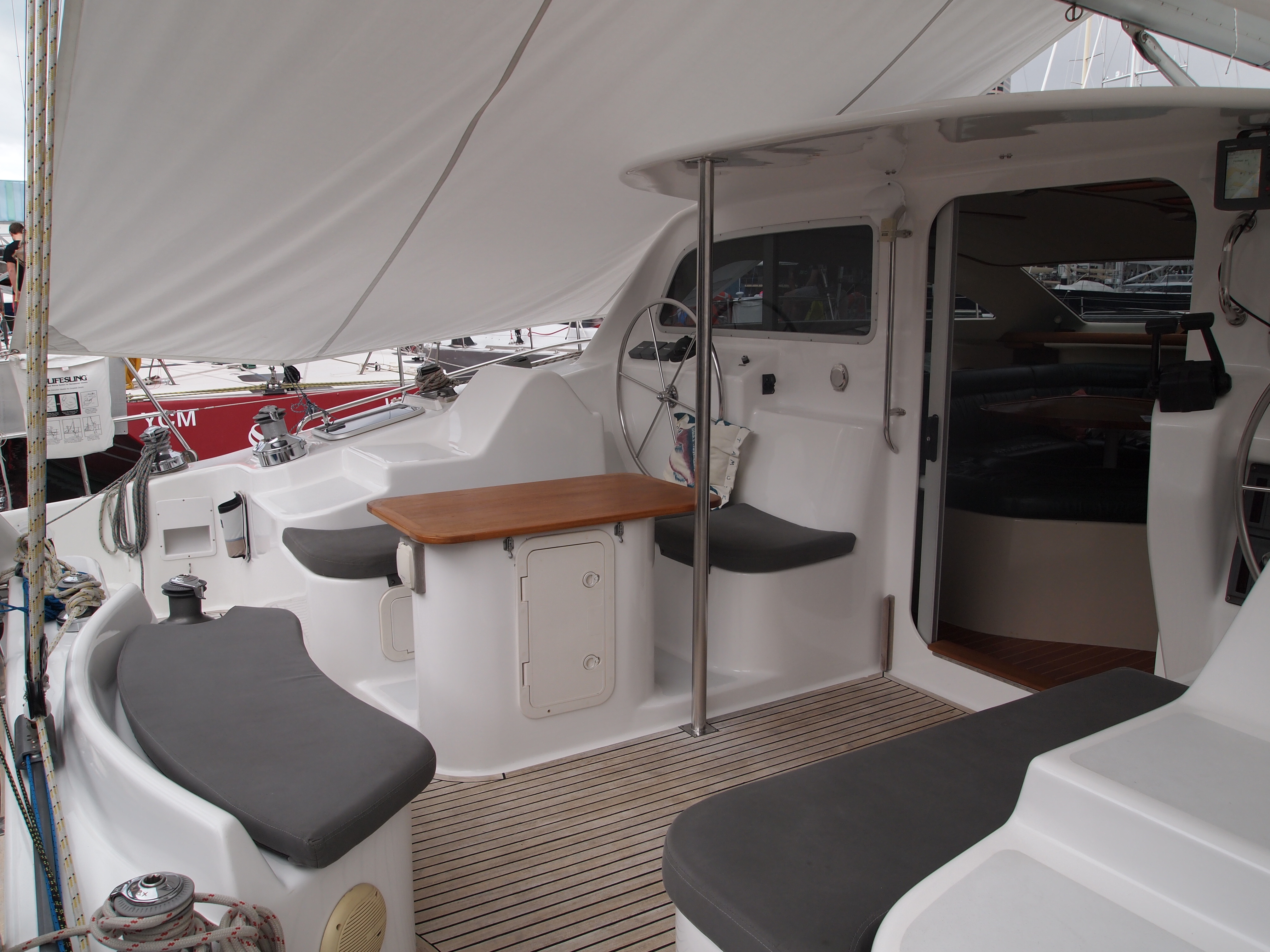There is a gas barbecue attached to the radar arch accessed from the cock-pit plumbed into the gas supply.