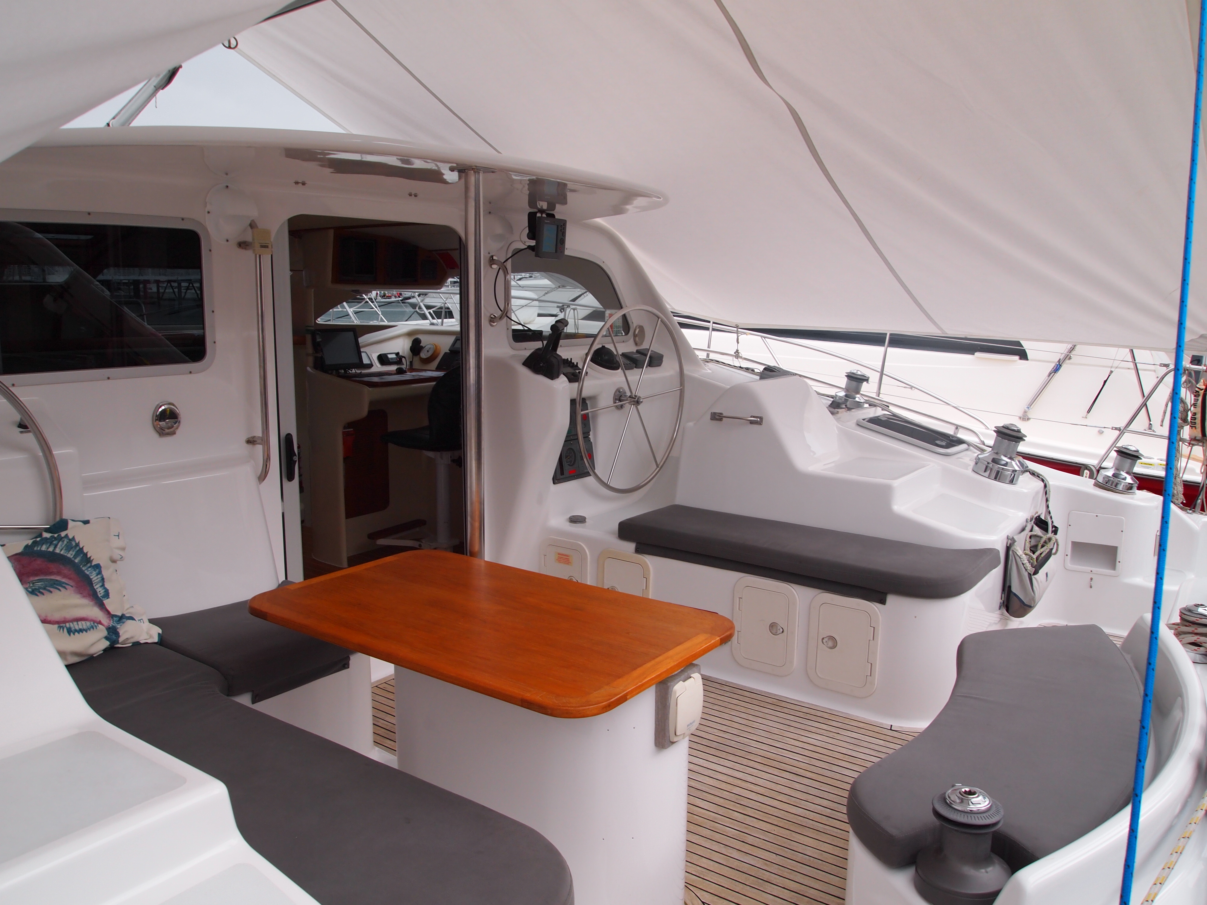 Bridgedeck saloon with table and seating